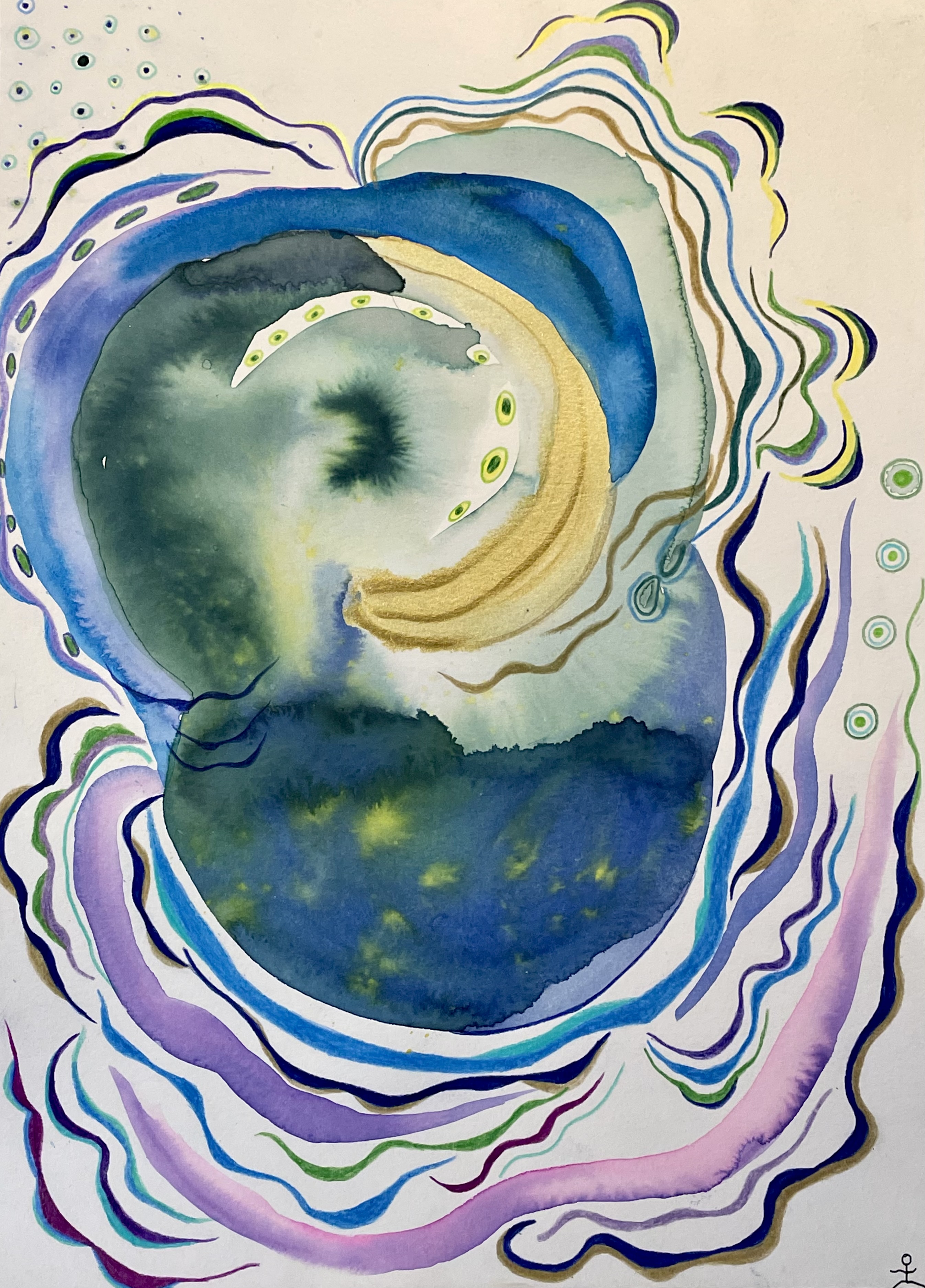 Tinta acrílica, rotuladores y lápices de colores sobre Papel
